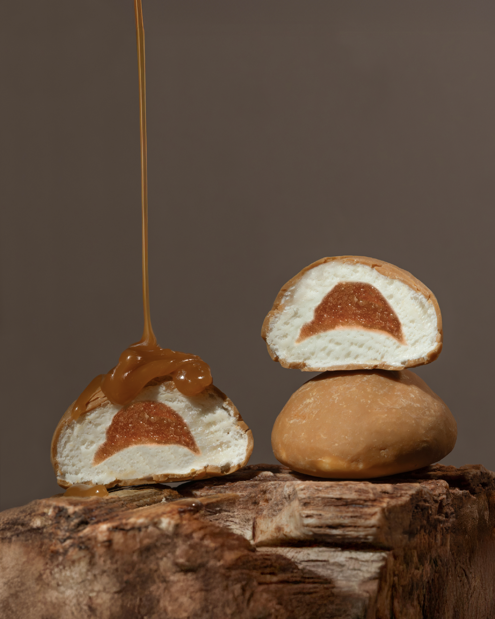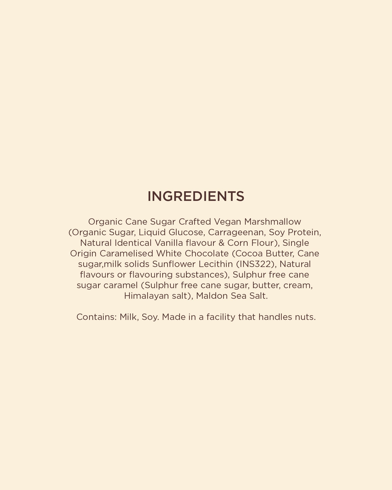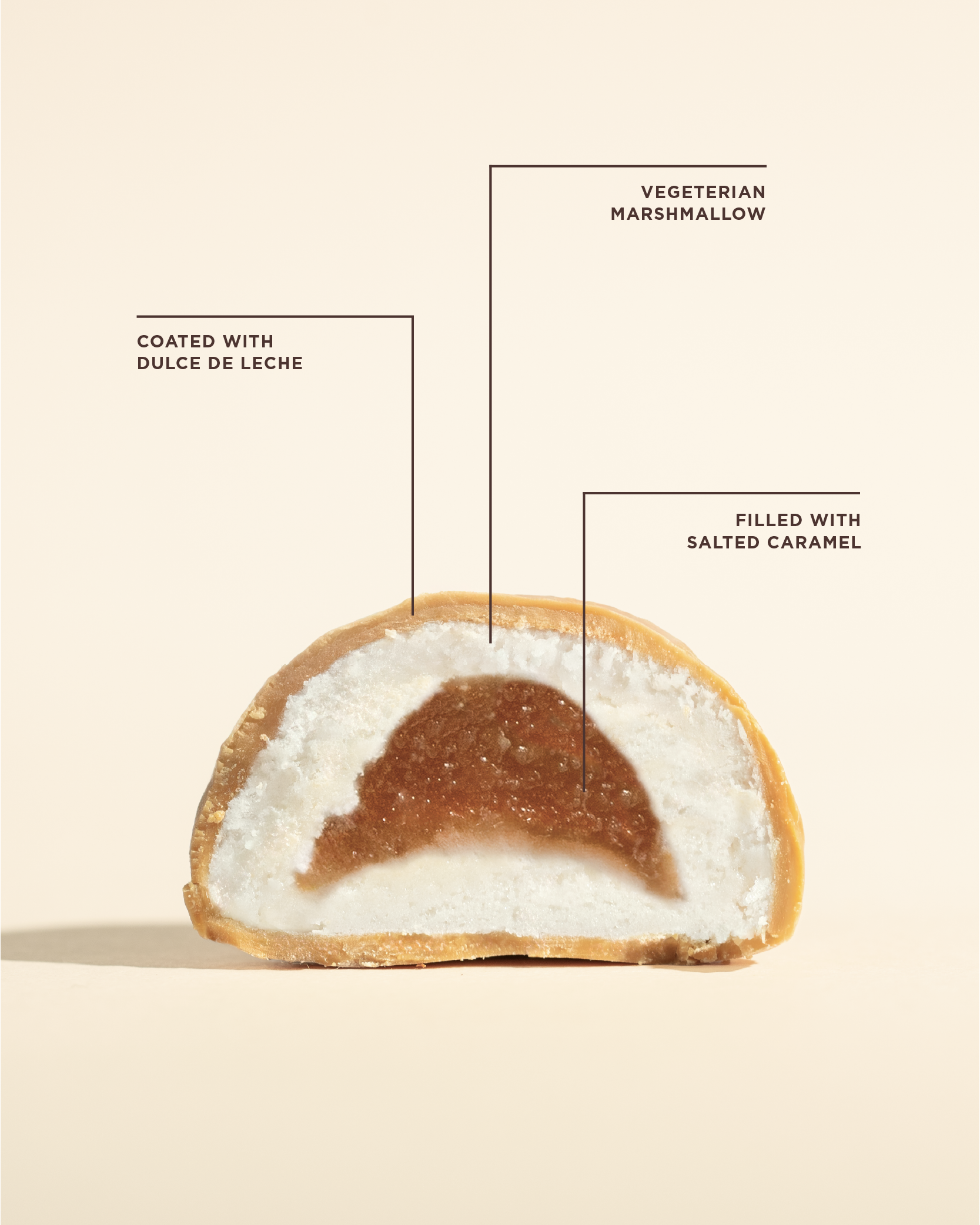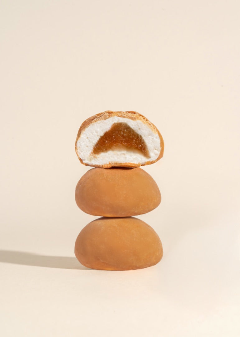 A duet of Creamy dulce de leche single origin chocolate and vegetarian marshmallows with molten caramel core, offering a gentle, velvety indulgence with sweetness that melts seamlessly on the palate.